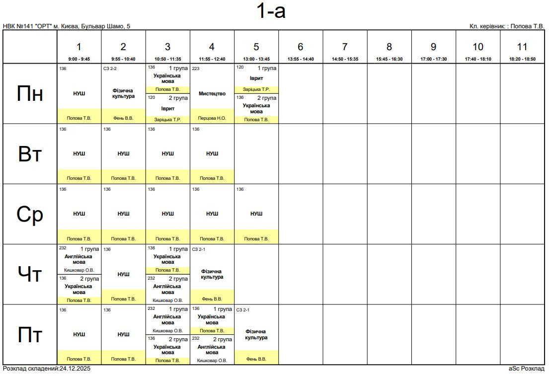 Розклад занять
