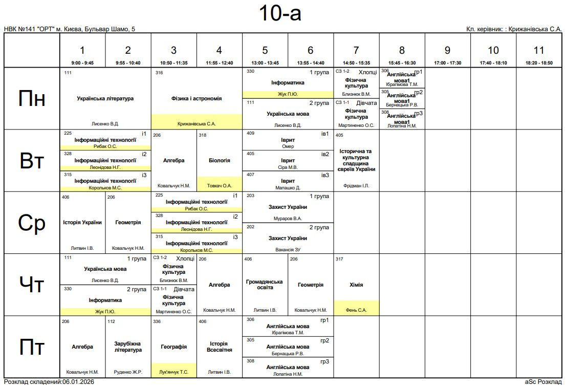 Розклад занять