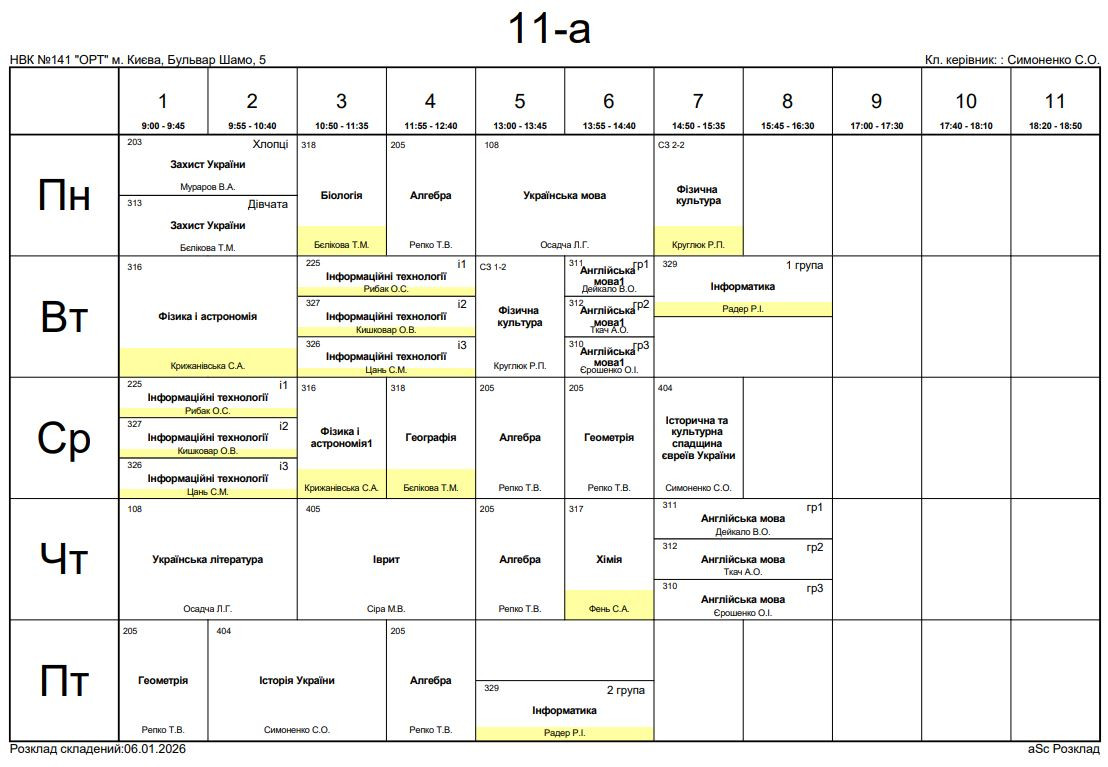 Розклад занять