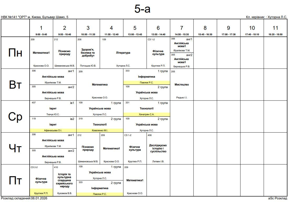 Розклад занять